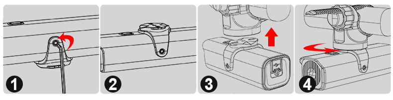 Montaż z podstawą GoPro – To rozwiązanie dla osób, które chcą wykorzystać istniejące uchwyty GoPro lub preferują bardziej uniwersalny system mocowania. Dzięki czterem łatwym krokom lampkę można zamontować na różnych akcesoriach kompatybilnych z standardem GoPro, zapewniając elastyczność użytkowania.
