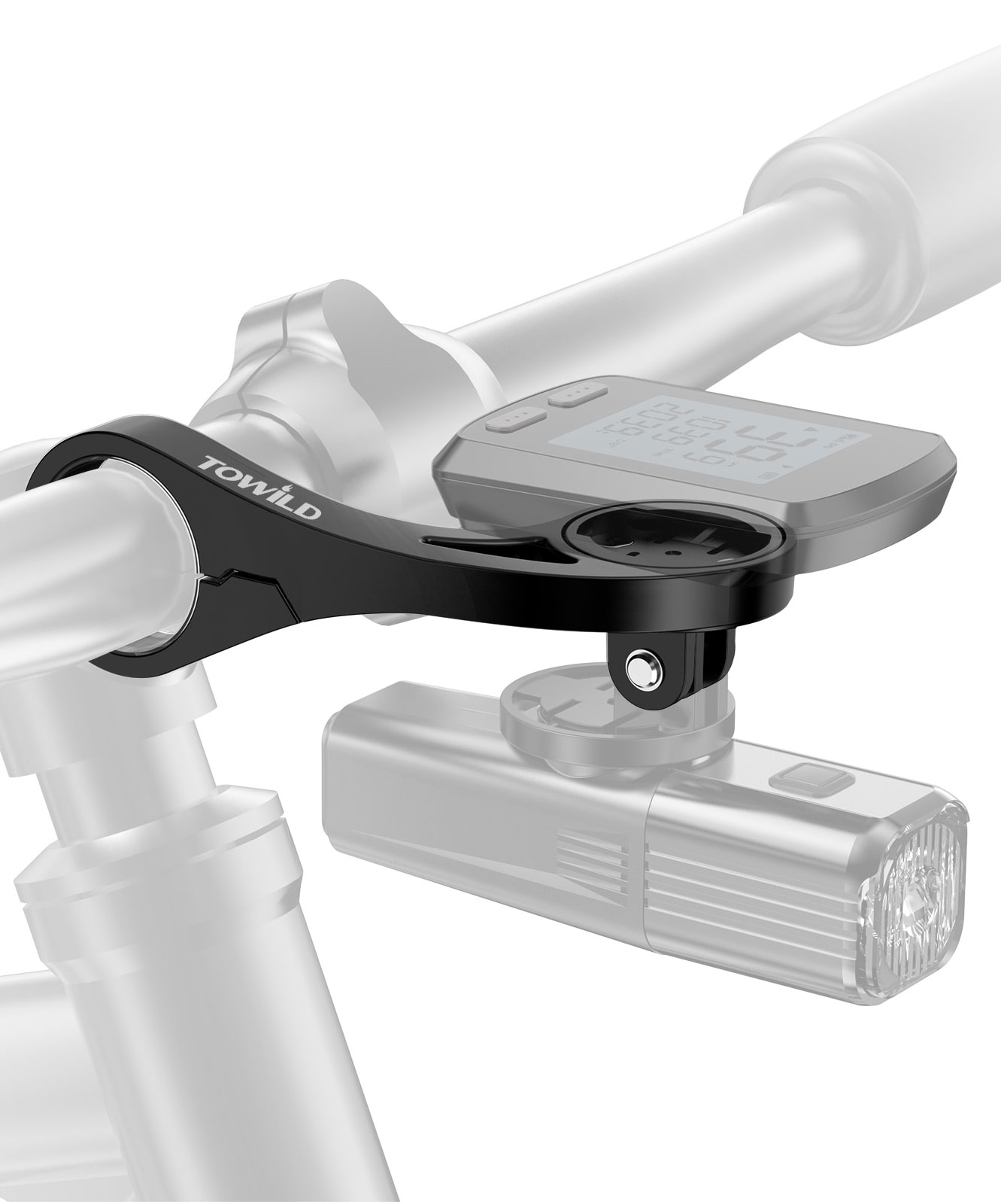 Mocowanie rozciąga się od spodu kierownicy, umożliwiając montaż komputera rowerowego bezpośrednio z przodu dla optymalnego komfortu wizualnego.